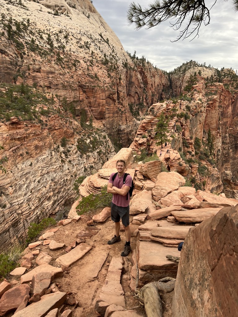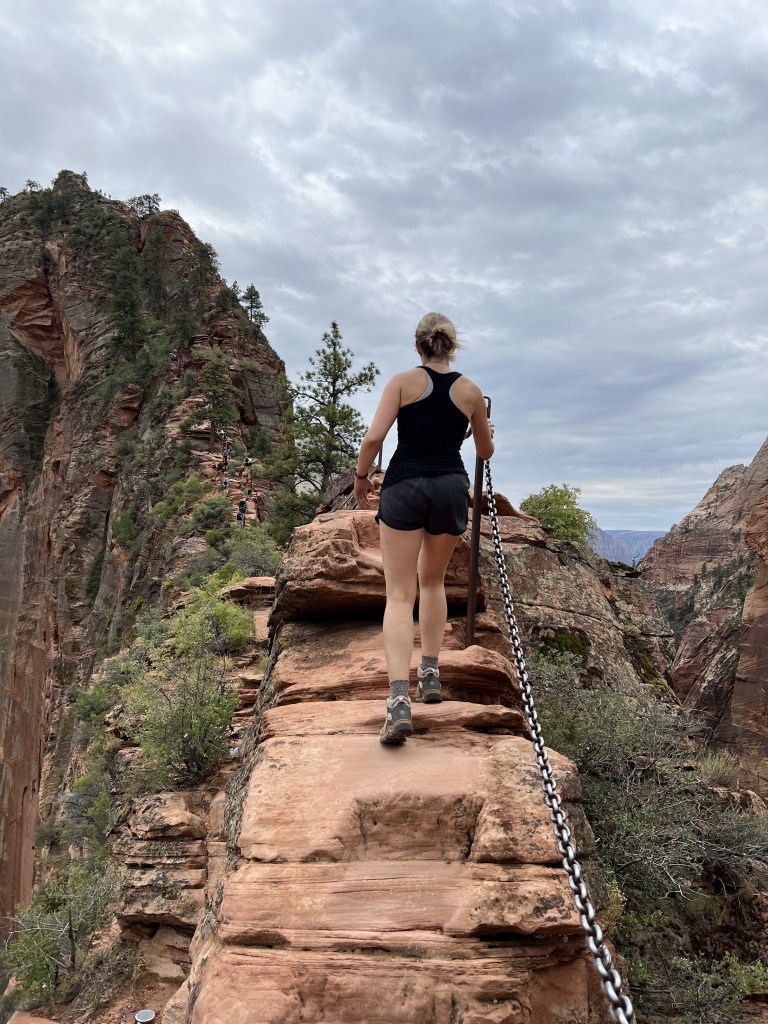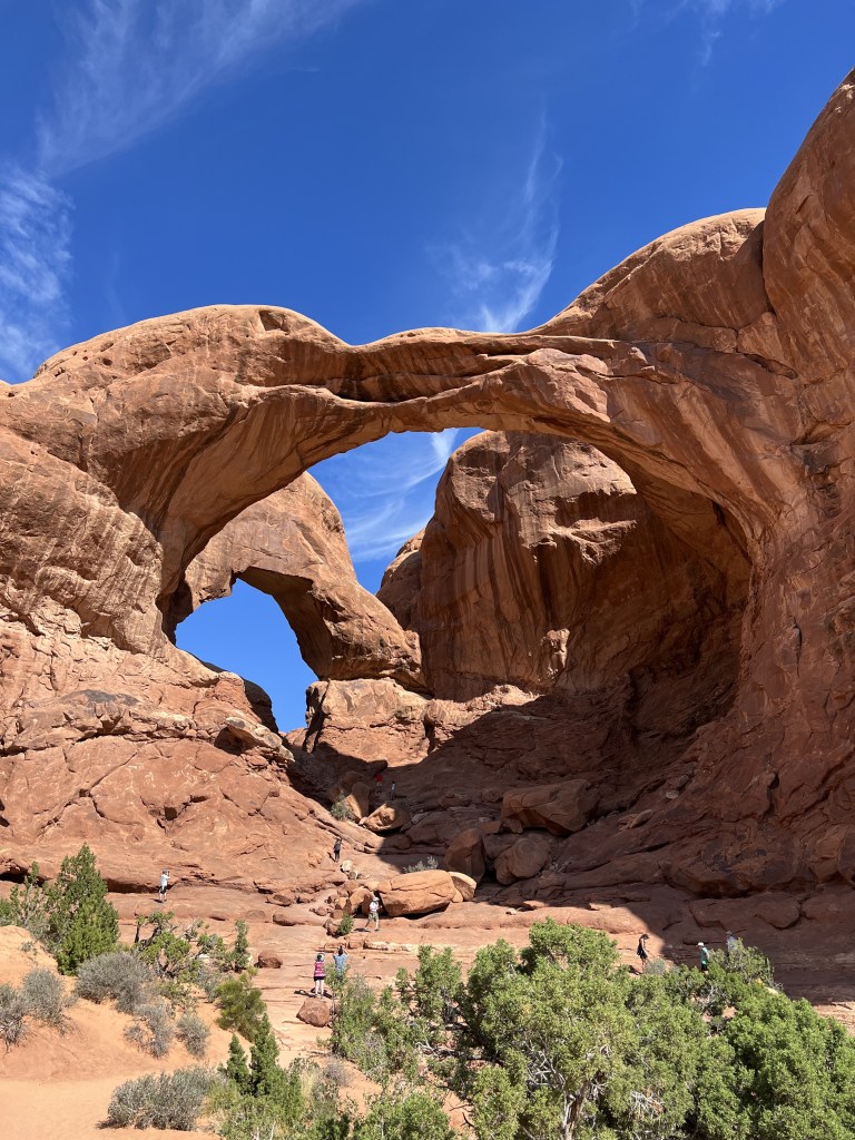 Our next stop was Moab, Utah. This is the gateway to several national parks and adventure activities – we were were here to see Arches National Park. This was such a cool area and the arches really speak for themselves. Get up early to beat the heat if you’re there in summer like we were. We gave ourselves the first half of the day to explore the highlights of this park before driving to our next destination. We signed up the night before for a timed entry – we got 6-7am, so we entered around 6:30am and got to the Delicate Arch trail at 7am. The Delicate Arch is a must see and a dynamic 3.5 mile round trip. The other arches we targeted (Landscape Arch and Double Arch) were a pretty easy < 1 to 2 mile hike. After a long morning we left the park by 12pm to start our next 5+ hour drive to Zion.