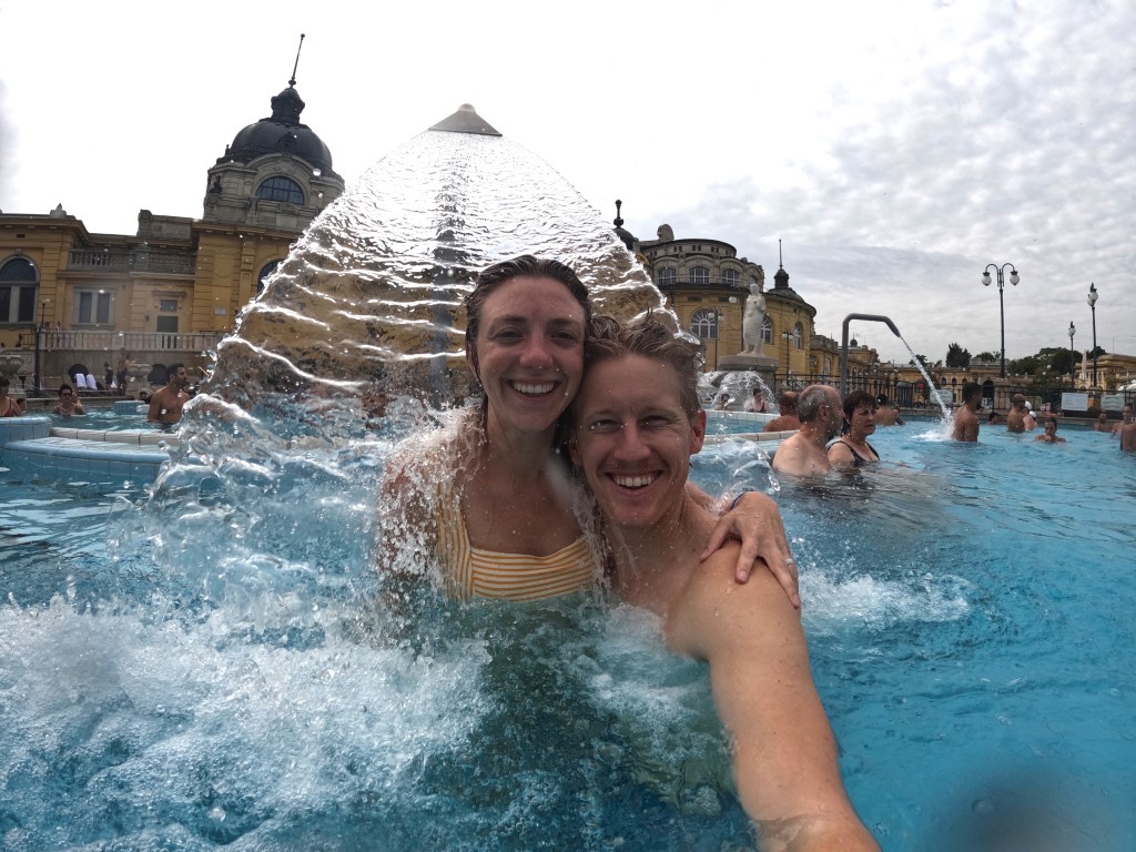Budapest is known for its medicinal thermal baths so first up in the AM was a short tram ride to Széchenyi Thermal Baths, the largest in all of Europe. We didn’t really know what to expect but WOW, what a pleasant surprise. Széchenyi was originally built in 1913 and is fed by a few different natural hot springs. For what amounted to about $17 each, we got full access to what felt like an old country club, with indoor / outdoor pools (temps up to 104°F), blazing hot saunas, and steam rooms. The crowds were minimal but we were there on a Wednesday and past high summer travel season – we’ve heard it can get pretty chaotic otherwise. With that in mind we highly recommend it! After three hours we felt extremely relaxed and refreshed.
