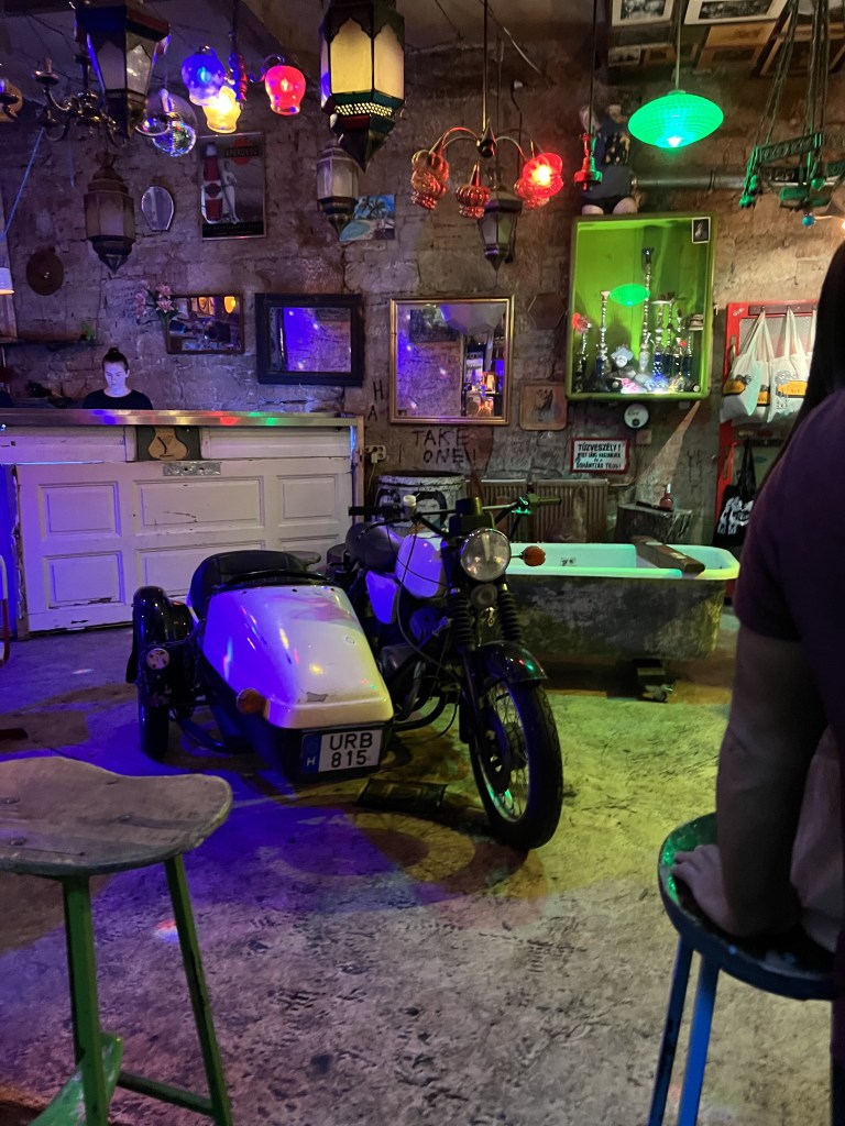 After the cruise and before heading home, we stopped by one of Budapest’s famous “ruin bars” called Szimpla Kert which is effectively a series of walk up bars built inside an old (ruined – get it?) factory. It was poppin’ with strong Berlin meets Star Wars cantina vibes. It was so cool we even braved a downpour to go back the following day!