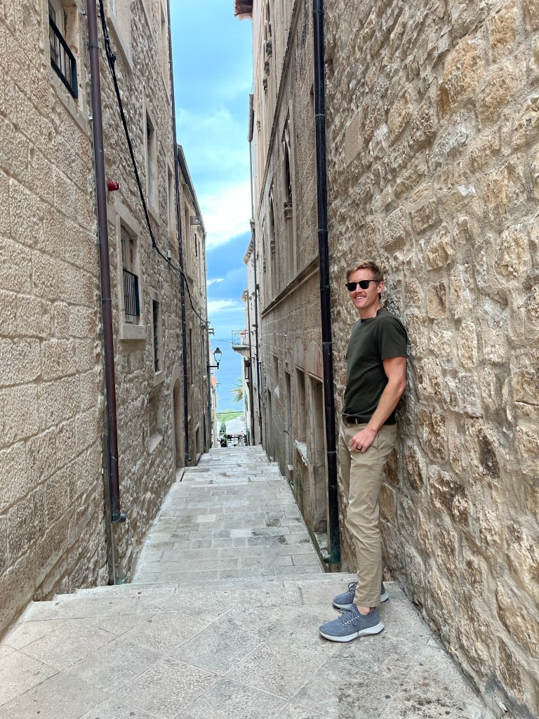Once we bid farewell to Diane and Morgan we boarded a ferry to Korčula, one of the many islands just off the coast of mainland Croatia. Korčula is about halfway between Split and Dubrovnik and because only Dubrovnik has nonstop flights to our next destination, it made for the perfect stop over. The island itself is about 30 miles long but we stayed in the main town at the far eastern end. While we were worried about a rainout, beyond some clouds we lucked out and got nice and pleasant weather. Our Airbnb even had an outdoor terrace with great views of the water. The island is known for its old town (noticing a Croatia trend?) and its wine production so we made sure to experience a bit of both. We found a quaint tasting room on the edge of old town and around the corner we also discovered a cocktail bar operating at the top of a 15th century turret at the water’s edge. Pricey drinks but couldn’t ask for a more memorable experience during our time on Korčula!