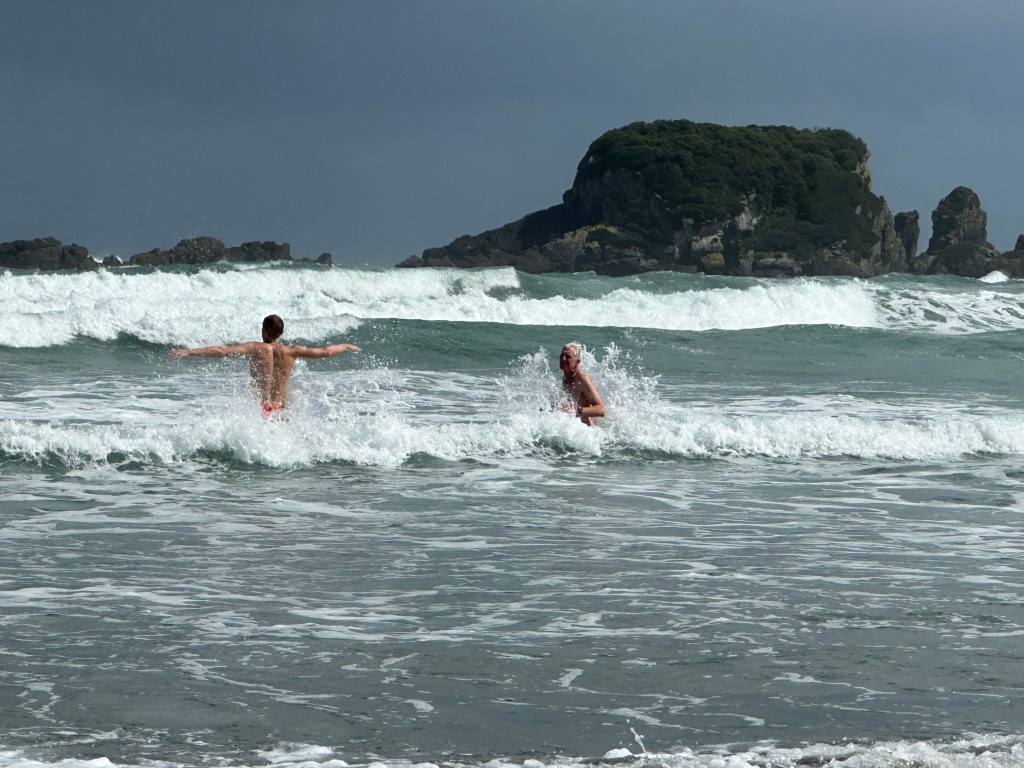 We spent two nights at Tauranga Bay on the South Island’s wild West Coast and also got our first introduction to the South Island’s “favorite” residents – sandflies. And yes, they bite – Maori mythology has it that the goddess of the underworld released the sandflies into Milford Sound to prevent humans from lingering too long in such a beautiful place. On occasion, long pants and/or bug spray were a must.