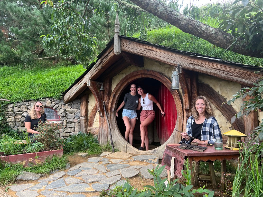 On day four the two of us split up – Abby met back up with Michelle and Taylor (who flew with us from Sydney) and our Kiwi friend, Hayley, to explore Hobbiton (from Lord of the Rings fame) while Ian, Susan, and Ken drove down to the town of Rotorua, known for its geothermal activity and redwood forests.