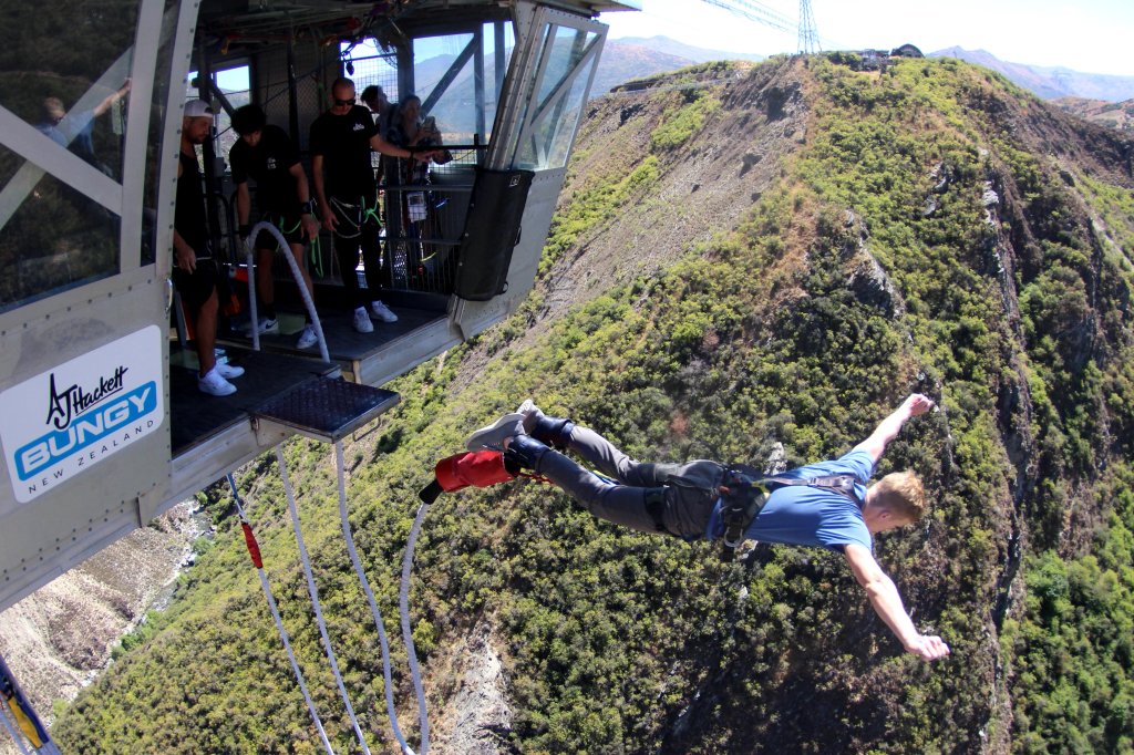 At our southernmost point of this New Zealand trip, we stopped in Queenstown and successfully completed a bungee jump from 134m (~440ft) for Abby’s birthday. Another fun fact: bungee jumping was invented in New Zealand!